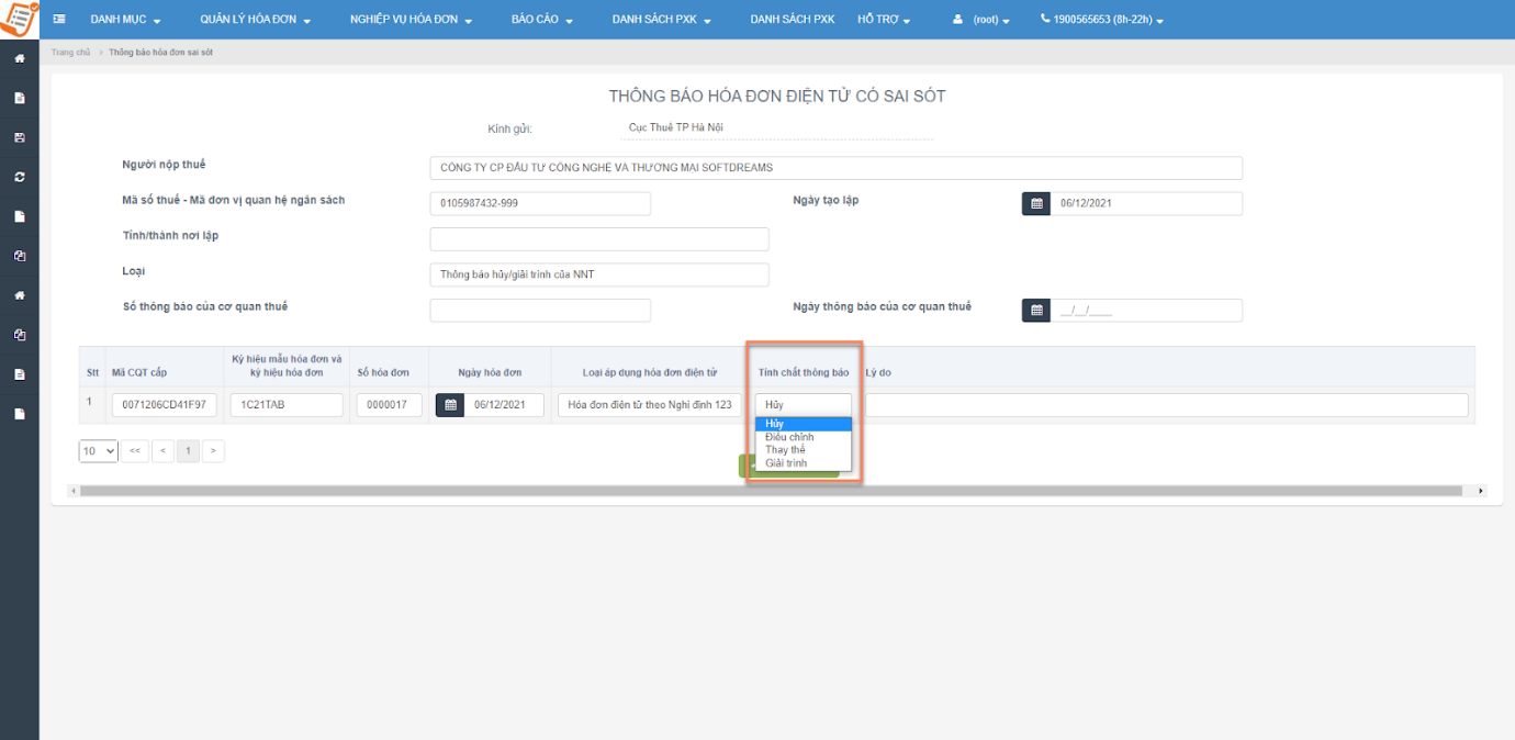 - Thông báo hủy/giải trình của NNT: Trường hợp bên bán/bên mua phát hiện sai sót