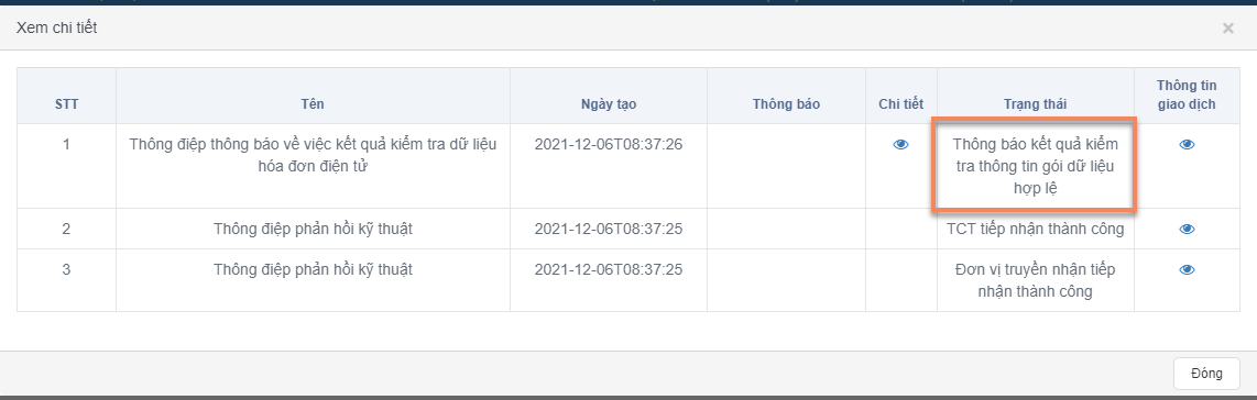 Bước 5: Kiểm tra kết quả trả về của CQT trong màn “Lịch sử giao dịch”