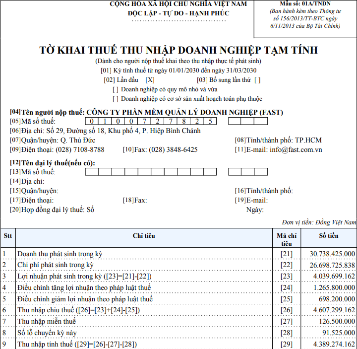 Số thuế TNDN tạm tính là: