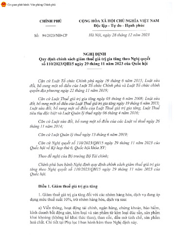 Hiện tại Nghị Định 94/2023NĐ-CP ngày 28/12/2023 thời hạn miễn giảm thuế GTGT 8% sẽ kết thúc vào ngày 30/06/2024 này . Vì vậy các Công ty cũng như Anh/Chị làm công việc xuất hóa đơn cho khách hàng hãy kiểm tra và cập nhật chính sách thuế cho kịp thời để hạn chế sai sót trong lĩnh vực thuế của công ty mình nhé.