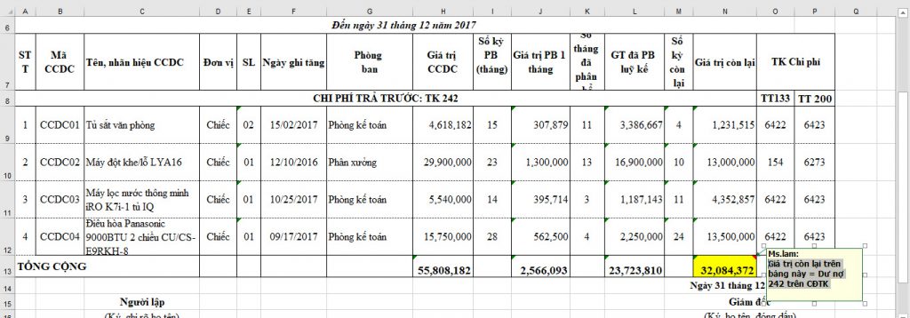 4. Báo cáo xuất nhập tồn, Khấu hao TSCĐ, Phân bổ CCDC;
