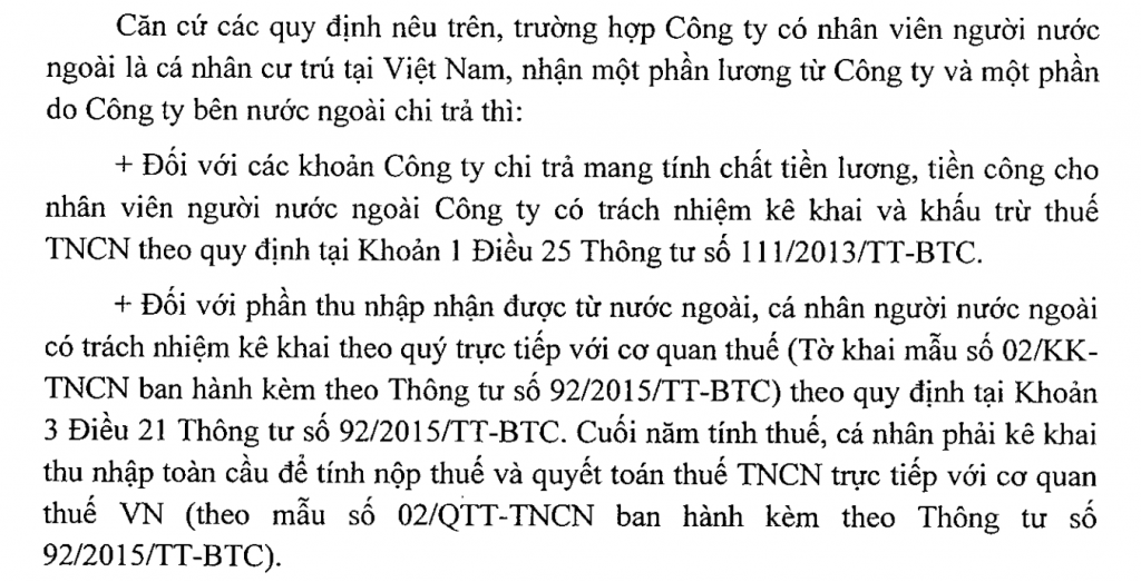 ➤ Trường hợp 1: Cá nhân có thu nhập từ nước ngoài theo hợp đồng lao động