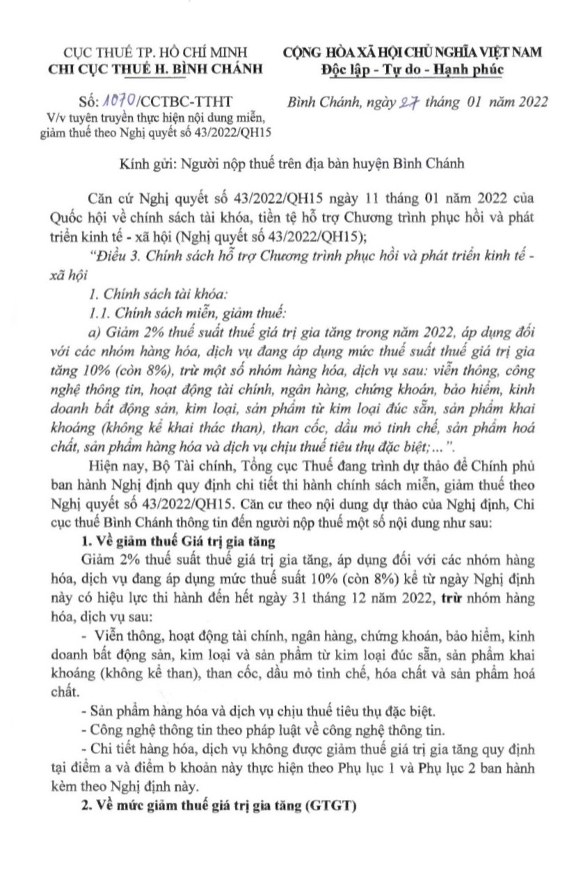 Hướng dẫn giảm Thuế GTGT còn 8% theo Nghị Định 15/2022/NĐ-CP
