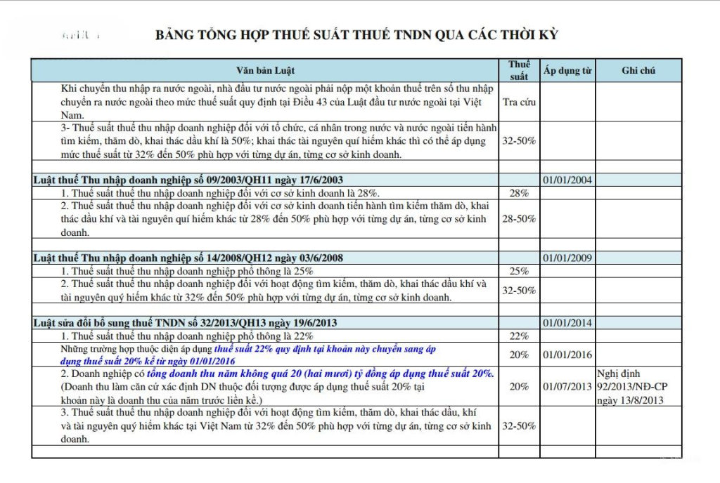1.2. Mức thuế suất thuế TNDN từ 32% đến 50% cho DN :
